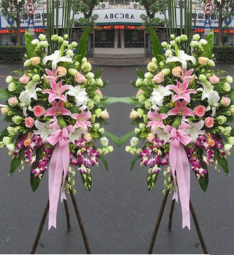 7朵百合(粉色+白色),50只鮮花(戴安娜玫瑰+白玫瑰+香檳玫瑰+紅色康乃馨)
