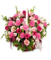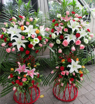 白+粉百合6朵,30支紅色扶郎花,10支粉色扶郎花,16支黃色扶郎花,黃鶯,散尾葵等豐滿搭配。